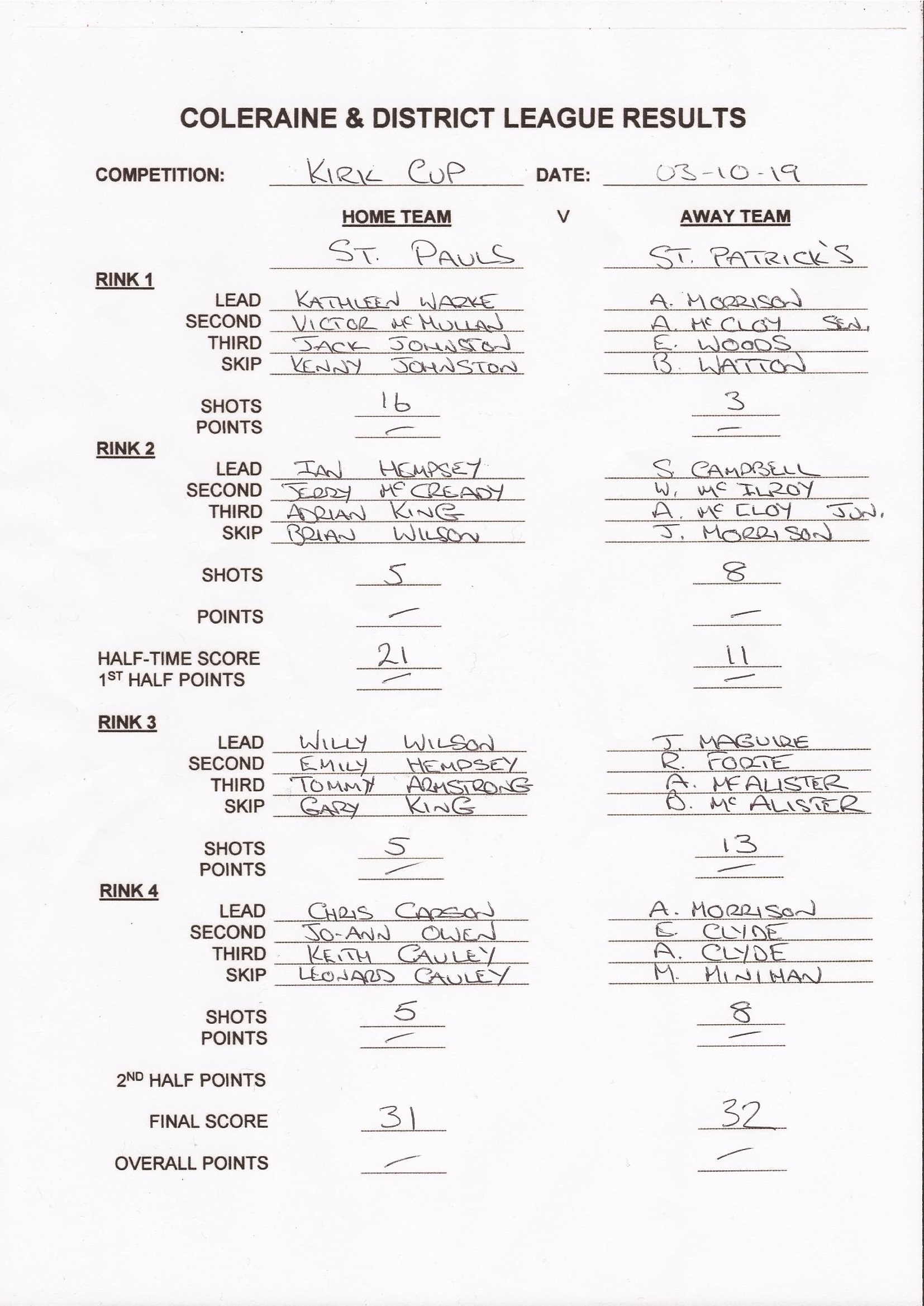 After the preliminary and first round of the Lexie Kirk Charity Cup have been played the teams still remaining in that competition shall